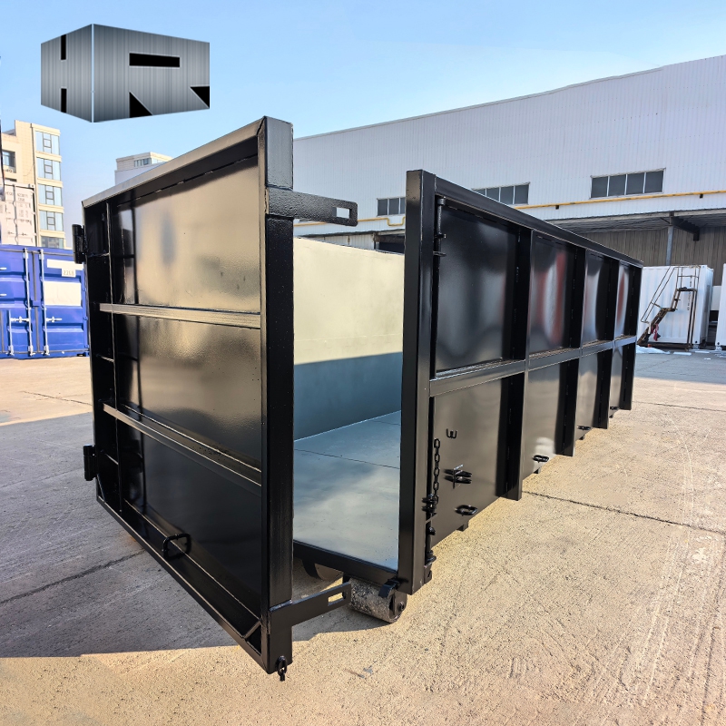 We offer flexible customization: size, material, surface treatment, and additional features (tarpaulin, sealed doors, forklift access). Perfect for specific waste types (construction debris, metal scraps).